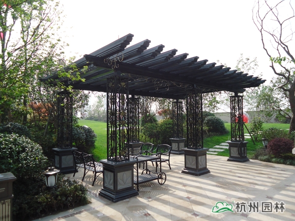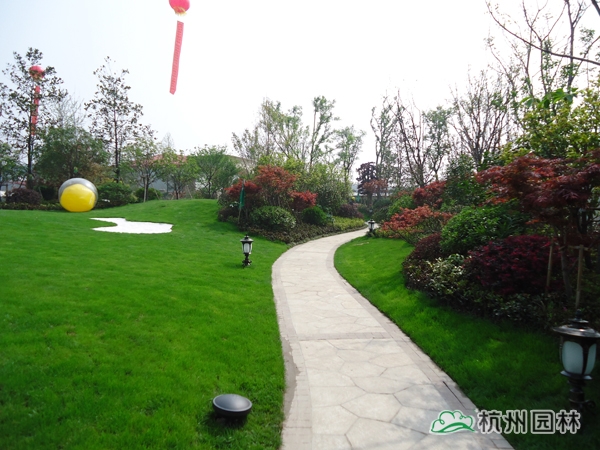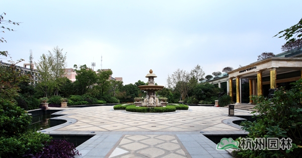 该工程位于杭州城北石祥路与蔡马河交汇处,为大型综合性园林景观工程,内容包括园林建筑、苗木种植、硬质铺装、叠石跌水、景观小品、土坡造型等。该项目景观全方位采用规则式与自然式融合的维多利亚园林风格,如梦似幻,华贵雍容,将维多利亚皇家园林景观特征表现得淋漓尽致。