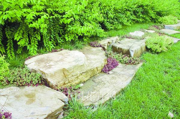 为了配合每个景观节点的风格,园路的铺装材料和手法各不相同。据高仁良介绍,工程中用到的铺装材料主要有汀步石、印花地坪、文化石、青砖、荷兰砖、花岗岩等,其中,印花地坪是一种新型的铺装材料。“印花地坪主要用在北广场上,其工艺为:在混凝土上面洒上特殊的配料,整平之后,再用模具一块一块压出形状,最后用特殊的胶水封膜,这种施工方法工艺新颖,花样和颜色比较多,虽然工艺较为复杂,但是景观效果非常好,远远看去,就如盛开在脚下的‘花海’,一路迤逦而去。”高经理说,“其他的铺装材料虽然比较常见,但乐动体育·官方网站-乐动中国官方门户 在铺装工艺上进行了创新,如在下沉广场的廊架旁,乐动体育·官方网站-乐动中国官方门户 用黑色的鹅卵石与芝麻灰的花岗岩搭配,铺出来的路面呈现出立体感,这种铺装工艺是借鉴了室内装饰的手法,通过改造,用于室外铺装,远远看去,就像一级一级的台阶,带动了周围的景观也动起来。”
