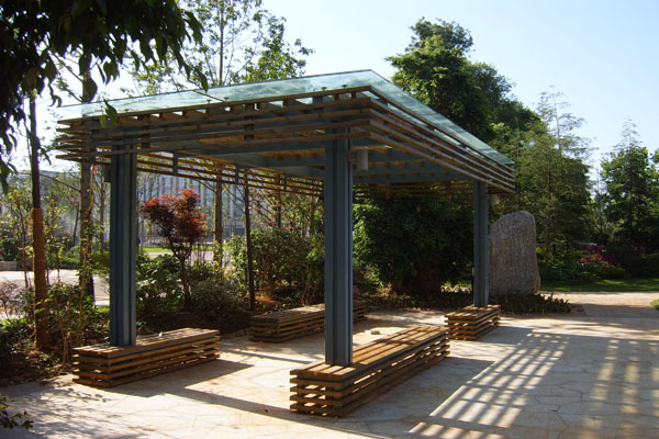 花架与周边植物巧妙搭配。