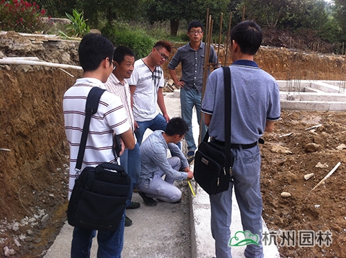 目前,安吉项目部按照施工进度计划已完成了售票房、公厕、山门、入口亭子、摄香居庭院等的基础结构施工。检查组一行到项目部后,先对施工现场进行了全面细致的检查,指出了存在的问题,同时将正确的操作程序对施工人员进行详细讲解,要求施工人员严格按规范操作,保证工程质量。接着,工程管理部、成本部和财务部对项目部进行交底工作,并提出相应的要求。