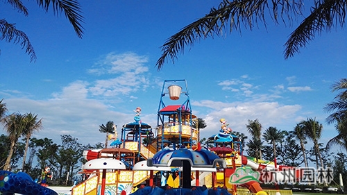 工程景观面积约14万平方米,施工范围包括酒店西面软、硬景工程,即沙滩泳池区、中轴景观、南面花园区、别墅区景观、客房宅间景观、水上乐园、冲浪池、儿童乐园、木栈道景观、景观灯具和景观小品等。
