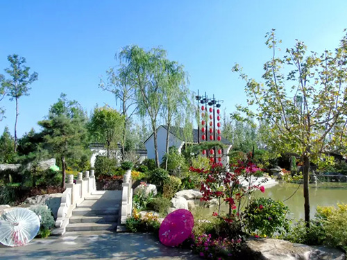花博会开放时间是9月份,为配合开园需要,根据不同植物的开花特性及要求,采取相应的措施,确保植物的最佳观赏效果。桂花是杭州市市花,是集绿化、美化、香化于一体的优良园林树种,一般在仲秋时节绽放,“浙江园”的桂花全部精选自杭州画境种业有限公司,提前运送至银川之后,利用当地的低温环境诱使其完成花芽分化,在开园时营造了桂花满树、满园飘香的氛围。八仙花又名绣球,花大色美,是长江流域著名观赏植物,在明、清时代建造的江南园林中就栽有八仙花。特别是八仙花‘无尽夏’具有多次开花的特点,项目人员通过修剪、培育,促进其花芽的再次分化,使展园内的八仙花处于生长繁茂、花团锦簇的良好状态。此外,还结合公司“一种红枫快速成景方法”等专利,运用摘叶等形式促进槭树科植物萌发新叶,为九博会的开幕增添新的色彩。