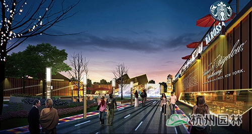绿岛长堤:连绵起伏的绿岛长堤巧妙解决了城市防洪与水岸景观问题,成为商业街的绿色背景,通过地形整理,打造出模拟山峦地形的绿地肌理,为居民提供休憩放松的绿色空间。