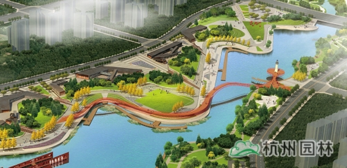 水岸广场:台地张弛有度,将台阶、坡道、草坪、木平台、广场组成丰富的滨水空间,流线型的岸线贯穿整个台地,形成一条观光滨水走廊,结合滨水岸线设置游船码头、亲水平台,形成极具特色的水岸广场。