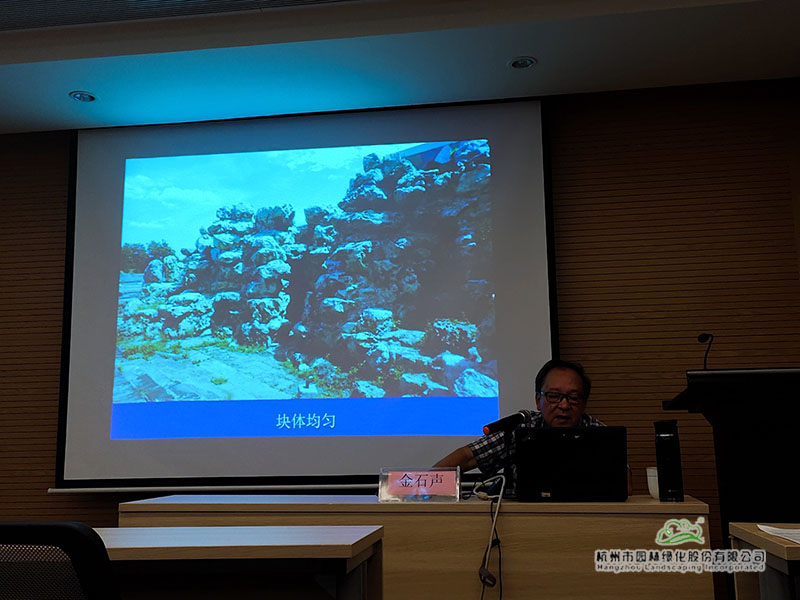 假山是由人工之力营造的山石景观,本源于自然。自然之山,纹理必然相通,石质必然统一。而艺术法则的首条便是“变化与统一”。石质统一,造型变化,营造的假山方能符合艺术规律。结合实际叠山操作技法和艺术造型目标经验,金石声老师将园林假山叠石施工技术的“十要”“二宜”、“六忌”、“四不可”原则形象化教学,生动地展现了如何将天然块石材料叠置成模拟自然山水的人工山体,从而起到美化环境、诗情画意、奇峻险秀、互动观赏的作用。
