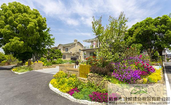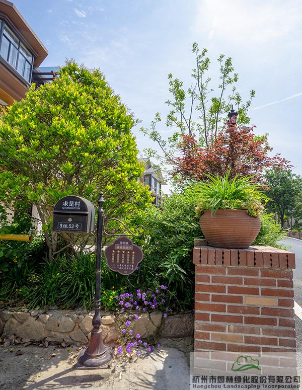 景墙边的植物配置同样有讲究。利用银杏、桂花、梅花、红枫等植物营造上层空间,这些植物具有遮挡作用,能够为庭院营造一定的私密空间。通过树状、球状、攀援、伞状、字母等各种形态的月季,金冠女贞球、龟甲冬青球、银姬小蜡球、蓝莓、八仙花、小叶栀子、翠芦莉、花叶千鸟花、蓝山鼠尾草、紫叶狼尾草等小乔灌木,在打造中层空间的同时,和美女樱、金娃娃萱草、花叶玉蝉花、花叶香桃木、紫菀、泽兰、矾根、五彩络石、石竹等下层空间植物一起,装饰和衬托景墙,使家家户户的景观更加丰富多变。