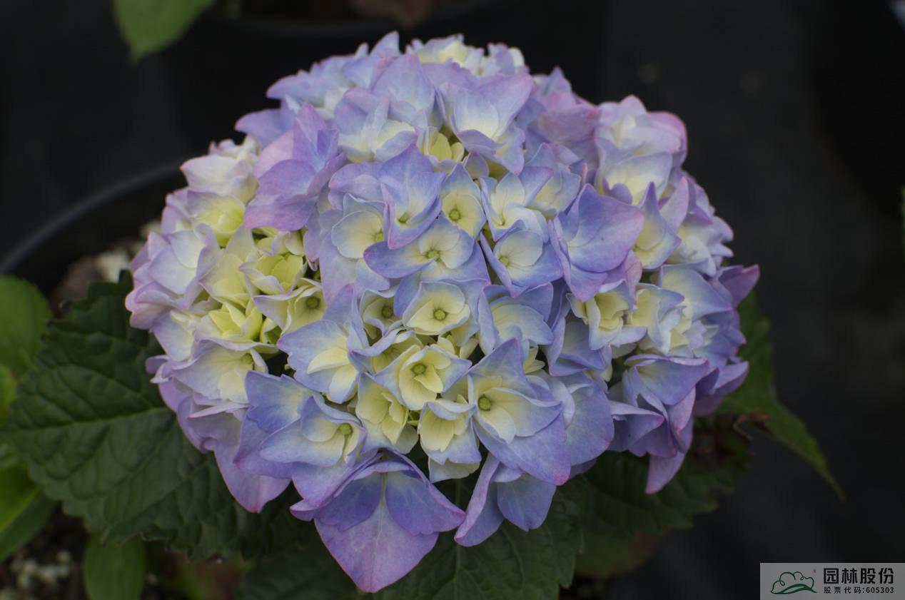 大叶绣球品种间杂交品种;叶片宽卵形,中绿色;近球状花,花型较大,萼片(花瓣)具有内弯的特点;花色以蓝紫色为主。盛花期的棉花糖,像是一个个小喇叭组合成球,特别萌系可爱。杭州5月上旬开花,可延续至6月下旬。