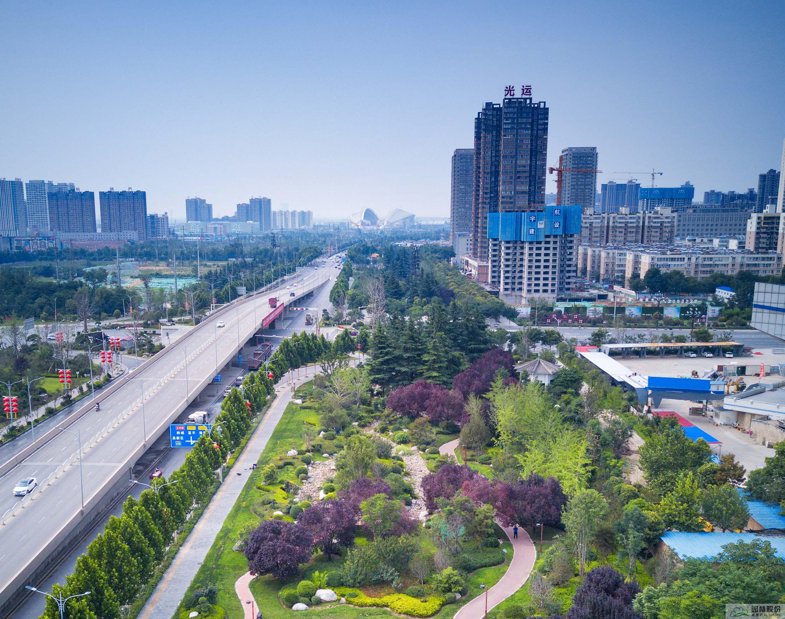 立体园林,师法自然。在另一个城市园林项目——渭南市中心城市道路绿化提升改造项目,南北向沿仓程路和渭清路的两条城市绿廊成为打造重点,公司打破原有西北城市绿化景观一成不变的阵列布局,在高铁站对面的仓程路端头,设计以造型油松为主的迎宾景观,丰富植物组团层次,引进耐旱耐寒的常绿品种,满足渭南市人民对城市景观从园林变园艺的期待,打造焕然一新的城市风貌。