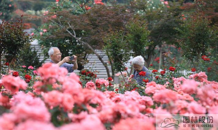 以月季为主题植物,在公园主要出入口、花坛及草坪区域配植多种月季园艺品种,形成主题花园,开启多彩四季。