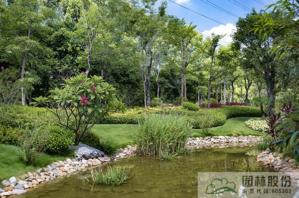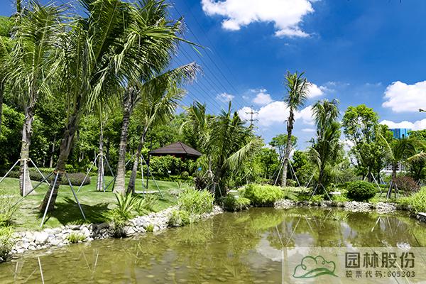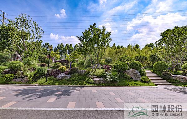 花溪落影:凤举路(创投路至光源四路段段)旱溪景观,以形态各异的卵石为基调,以旱溪配合植物的营造,在意境上营造“虽由人作,宛自天开”的景观。园路、景桥、景亭穿插其中,营造多变空间,配合雾森系统创造诗画意境。