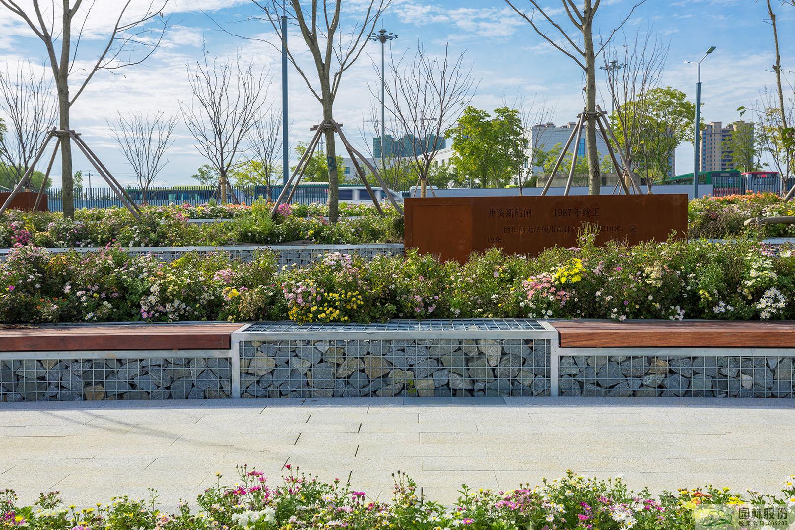 其中,砾石花园是海绵城市技术与景观建设有机融合的代表。花园引入枯山水设计理念,对自然山水进行提炼、浓缩,以景石代山,以砾石代水。收放自如的砾石铺地象征着水流,与运河之水相互呼应。该景观以松为特色,与考究的植物组成绿岛,同时运用了下凹式绿地的海绵技术。砾石花园的花草树木更接近自然,给人以浑然天成的感觉。整体用极少的构成要素营造简洁而有韵律的空间,创造出简朴、宁静的自然意境。