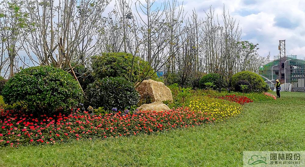 据项目现场负责人杨升超介绍,作为项目的施工单位,园林股份秉承精益求精的施工精神,坚持匠心造园的理念,从材料选择、微地形处理、植物配置等多方面,通过对细节的严格把控,对工艺的严格要求,致力于打造生态自然、节约环保的城市入口新景观。