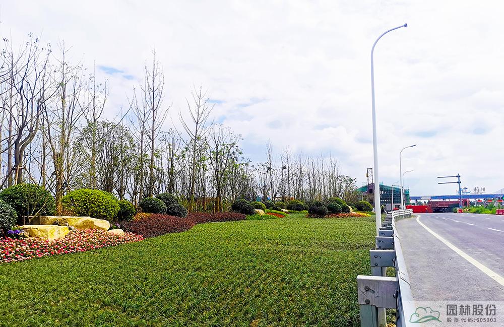 负责施工的沪杭甬高速-杭州入城口整治项目,位于九堡街道宣家埠村,施工范围包括防护林改造点、迎宾形象节点、出城形象区、收费站改造节点等多个节点的景观提升工作。