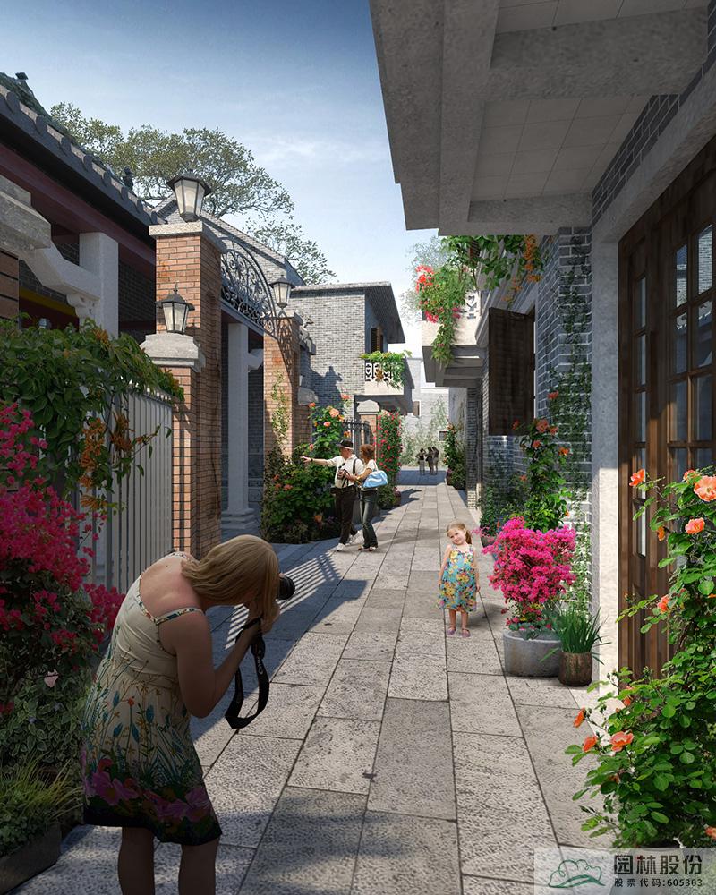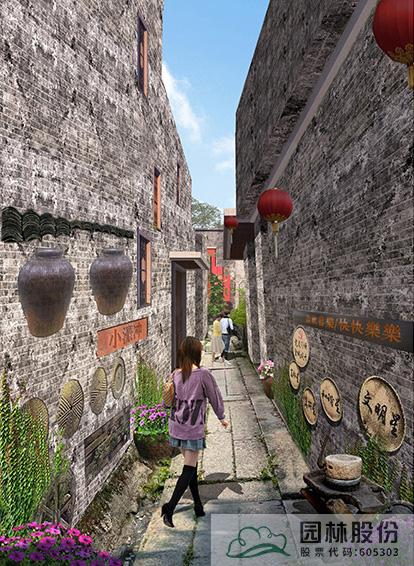 巷道改造设计说明:古巷芬芳段现状主要由青瓦青砖的建筑、青瓦夯土墙建筑组成,巷子宽度平均约2米,设计建议局部脱落露出夯土内里的恢复夯土墙原状,进行墙面立体绿化、铺装、排水沟、雨箅子等改造。