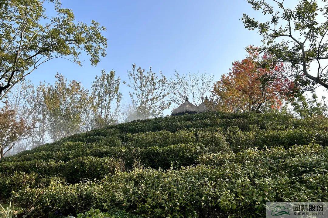 这其中运用到了茶树地转容的管理技术和大型苗木的土球加固技术,为保证茶山景观效果完美呈现,技术人员采取了一系列措施,包括开挖前先修剪嫩芽、喷施蒸腾抑制剂以及根据季节变化采取相应遮阳、施肥、预防病虫害等相应措施,经过几个月的精细化养护,最终达到“问茶”片区的景观效果。