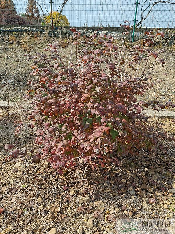 忍冬科荚蒾属,丛生性落叶灌木,高可达4米。花白色,花期4-5月,果大而红,观果期长,可从7月持续到10月。叶掌状,通常三裂,秋季一般9-10月叶色开始转红,11月达到最佳效果。欧洲荚蒾是荚蒾属中秋色叶效果较好的一个种类,红叶期来得比较早,且叶色最为鲜艳。该种病虫害少,适应性强,耐寒,北方室外能正常生长。生长速度快,适合工程应用或庭院观赏。
