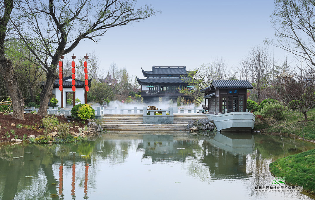 浙江园以“这山这水浙如画,这乡这愁浙人家”为主题,打造出一幅新时代、现实版的“富春山居图”。工程设计院设计团队提炼“千年运河情、西湖烟雨醉、西泠篆刻风、南湖红船颂”等浙江特色元素,多次至项目现场指导施工,最终呈现“诗画浙江”的生态之美、人文之韵和烟雨江南的清新婉约、灵动秀美。