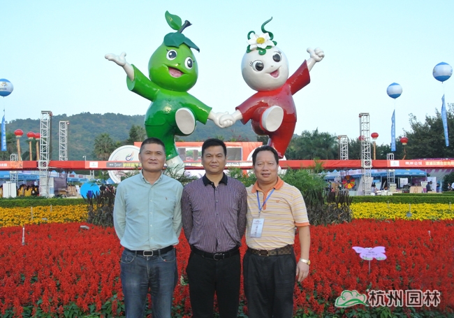 公司总裁张炎良(中)、工程总监高国良(左)、深圳分公司总经理徐向明(右)随与会代表参观考察海峡两岸花博会