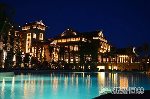 工程景观面积约14万平方米,施工范围包括酒店西面软、硬景工程,即沙滩泳池区、中轴景观、南面花园区、别墅区景观、客房宅间景观、水上乐园、冲浪池、儿童乐园、木栈道景观、景观灯具和景观小品等。