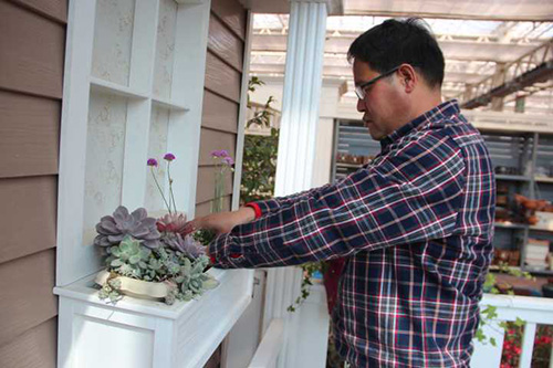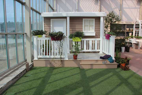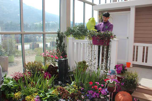 ▲乐动体育·官方网站-乐动中国官方门户 选择园艺中心室内一处小木屋的阳台,作为造景点。园艺师现场查勘后,初步确定花境布置点的面积和风格。