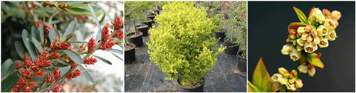 ▲从左至右:小叶蚊母、易丰女贞、蓝莓