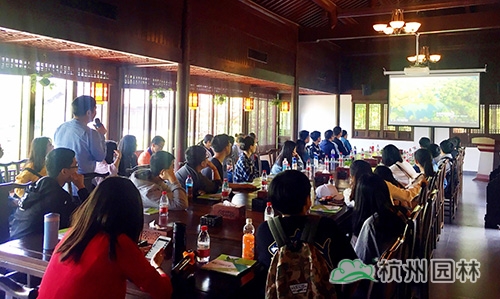 在座谈交流会上,人力资源部副经理沈晓萍向大家介绍了杭州园林的发展情况,展示了企业近年来承建的精品工程,并针对园林专业学生在企业的实习方向与职业发展规划作了简单介绍。邱希阳老师结合自身工作经验,针对杭州园林承建的工程特点,为在座学生做了精彩讲解。