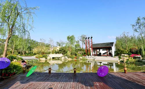 越溪浣纱:蜿蜒的溪流与美丽的花境,演绎一出春秋战国时期西施浣纱的美丽传说。
