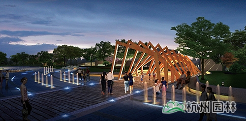 渡航广场:钻石形状的绿坡结合船型夹板造型,寓意破浪前行的渡船,象征肥西人民开拓进取的时代精神。