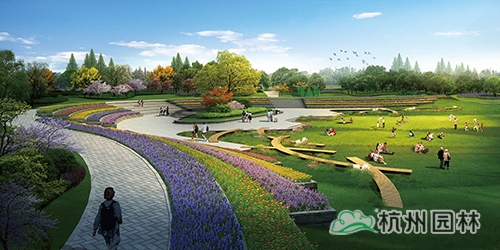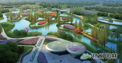 乐活园艺主题区:以家庭园艺花园为主,是公园的圩田湿地体验中心,水道如巷,河汊如网的圩田农艺景观,呈现出田园牧歌般的意境。包含飘带走廊、水荡花田等景点。