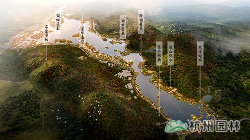 本次提升设计范围包括整个湘湖水域、环湖绿地以及东西岸山脊间的山体。