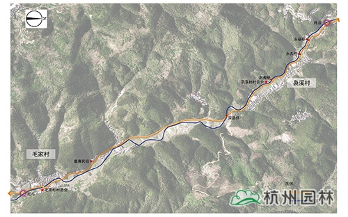 本次设计范围为Y503乡道(毛家村--袅溪村段)沿线的景观改造提升,长度约为3公里。改造提升内容主要为道路沿线两侧的建筑立面整治、荒地覆绿、花坛整治、护坡挡墙梳理更新、新增溪边平台、老桥修复、广场整治等。