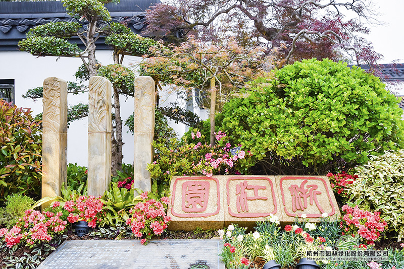 位于浙江园主入口西侧的景观小品“浙江印”,提炼自石鼓篆书第一人、西泠印社首任社长吴昌硕先生的书法作品,三方极具浙派篆刻风格的印章上,“浙江园”三个字,干净、利落,古朴、大气。这幅美景的背后,是深化设计团队数次往返西泠印社,从无数的篆刻名家作品中挑选、比对,决定采用最能代表浙江篆刻艺术的吴昌硕先生字体,从中找出“浙”、“江”、“园”三个字,在设计图中反复比对,调整位置、大小,最终确定下来。