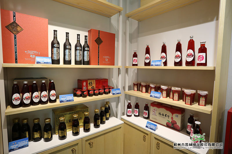 负一层展厅内,不仅循环播放着台州城市形象、旅游景区、山海风光、生态文明建设、“两山”理论成果的宣传片,还展示了台州特色的茶叶、乌药黄精、杨梅制品、无患子系列产品、木竹工艺品等特色林产品。