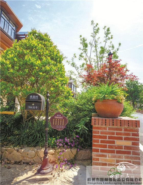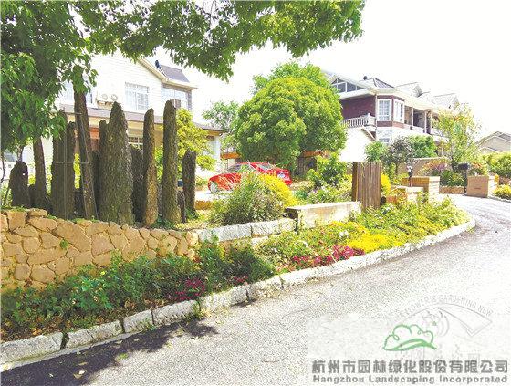 景墙边的植物配置同样有讲究。利用银杏、桂花、梅花、红枫等植物营造上层空间,这些植物具有遮挡作用,能够为庭院营造一定的私密空间。通过树状、球状、攀援、伞状、字母等各种形态的月季,金冠女贞球、龟甲冬青球、银姬小蜡球、蓝莓、八仙花、小叶栀子、翠芦莉、花叶千鸟花、蓝山鼠尾草、紫叶狼尾草等小乔灌木,在打造中层空间的同时,和美女樱、金娃娃萱草、花叶玉蝉花、花叶香桃木、紫菀、泽兰、矾根、五彩络石、石竹等下层空间植物一起装饰和衬托景墙,使家家户户的景观更加丰富多变。