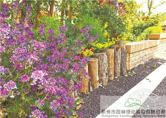 美女樱、佛甲草与小木桩,充满自然野趣。