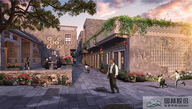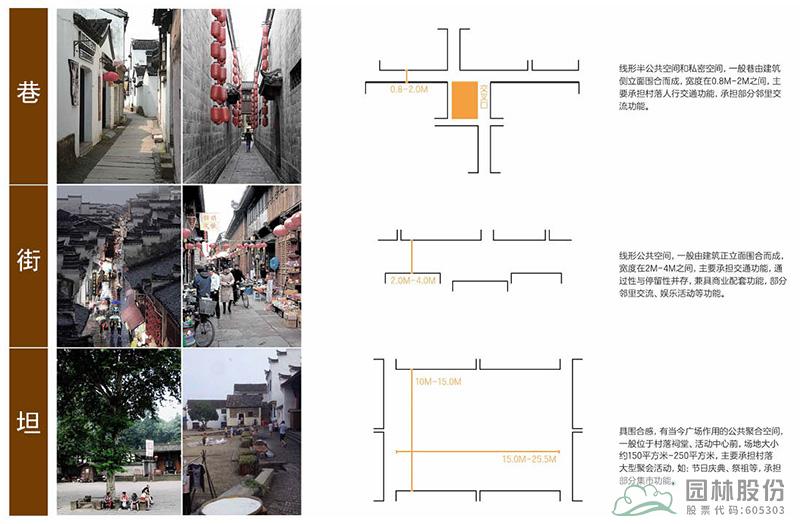 巷道改造设计说明:古巷芬芳段现状主要由青瓦青砖的建筑、青瓦夯土墙建筑组成,巷子宽度平均约2米,设计建议局部脱落露出夯土内里的恢复夯土墙原状,进行墙面立体绿化、铺装、排水沟、雨箅子等改造。
