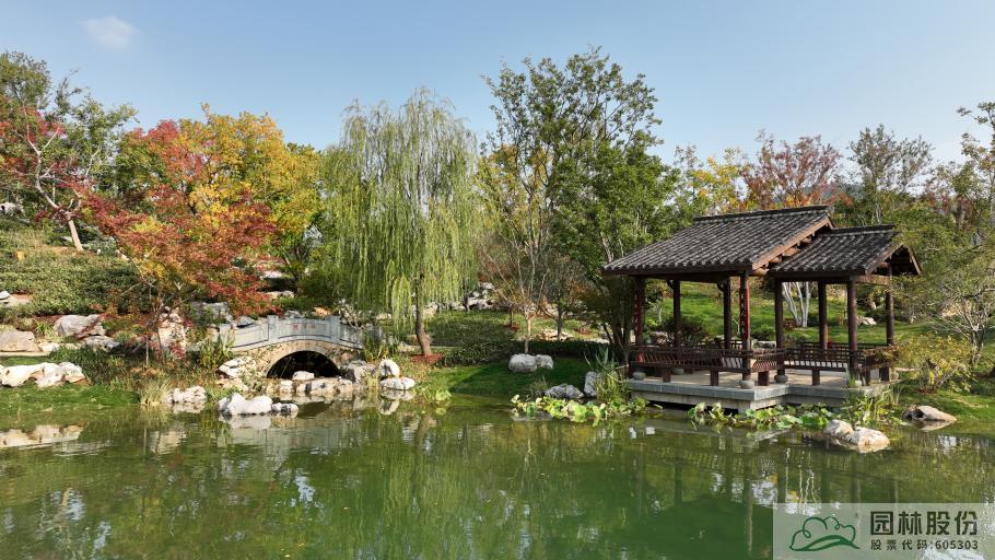 杭州园总体以西湖“景中村”为设计蓝本,以“家在钱塘”为主题,通过浙派园林的造园手法,营造“竹隐”“云舍”“湖居”“问茶”“寻香”五大展区,描绘出一幅“小桥流水人家”与茶园竹林、南宋风情相交融的美丽画卷,塑造“人与天调,然后天地之美生”的生态园林,展现宜居宜业宜游的诗画西湖和杭州韵味。项目施工内容主要包括铺装工程、绿化工程、园林水系、仿古建筑等。