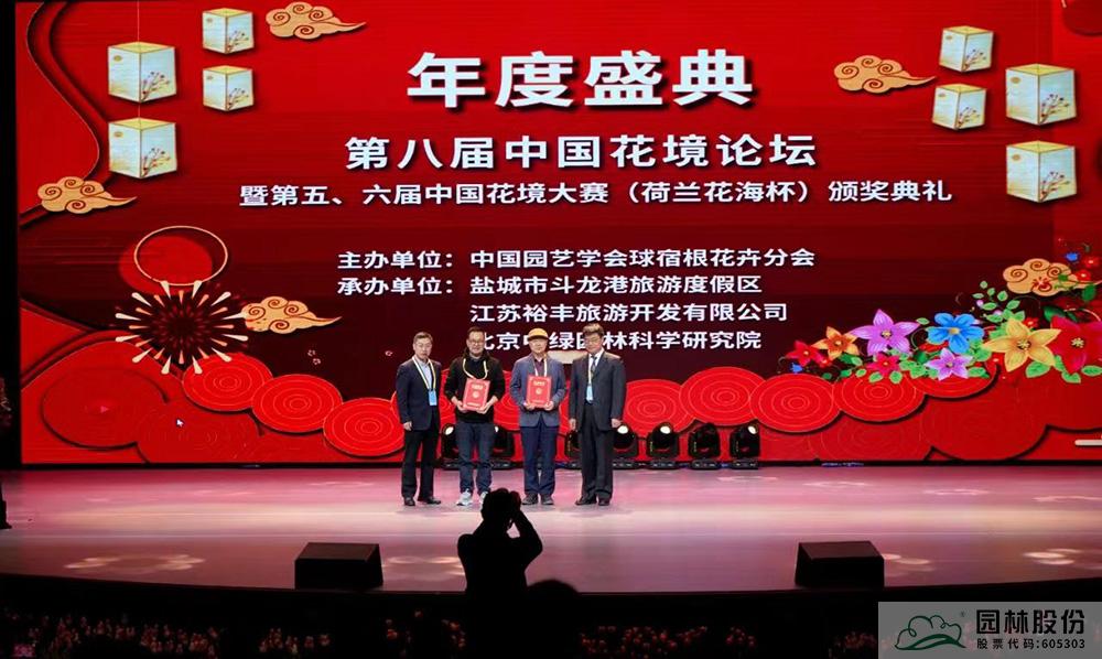 园林股份副总裁李寿仁(左二)上台领取特级花境师证书