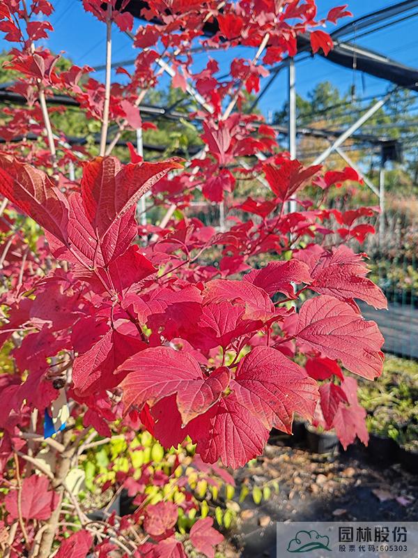 忍冬科荚蒾属,丛生性落叶灌木,高可达4米。花白色,花期4-5月,果大而红,观果期长,可从7月持续到10月。叶掌状,通常三裂,秋季一般9-10月叶色开始转红,11月达到最佳效果。欧洲荚蒾是荚蒾属中秋色叶效果较好的一个种类,红叶期来得比较早,且叶色最为鲜艳。该种病虫害少,适应性强,耐寒,北方室外能正常生长。生长速度快,适合工程应用或庭院观赏。