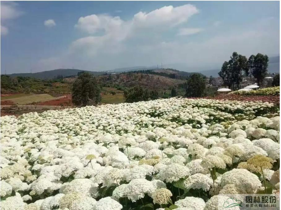 本次论坛值得关注的是昆明杨月季园艺有限责任公司精心打造的南国山花。集花卉科研、鲜切花种植生产、花卉旅游为一体的该绣球主题园艺基地占地 1000 多亩,种植 400 多个绣球品种(种)。生产的优质绣球切花,在斗南花卉市场独占鳌头,培育的绣球新品种分别有5个和7个欧盟和澳大利亚申请授权。