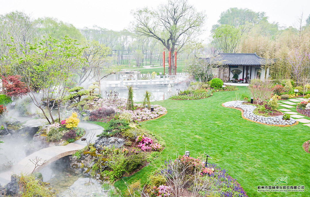 浙江园以“这山这水浙如画,这乡这愁浙人家”为主题,打造出一幅新时代、现实版的“富春山居图”。工程设计院设计团队提炼“千年运河情、西湖烟雨醉、西泠篆刻风、南湖红船颂”等浙江特色元素,多次至项目现场指导施工,最终呈现“诗画浙江”的生态之美、人文之韵和烟雨江南的清新婉约、灵动秀美。